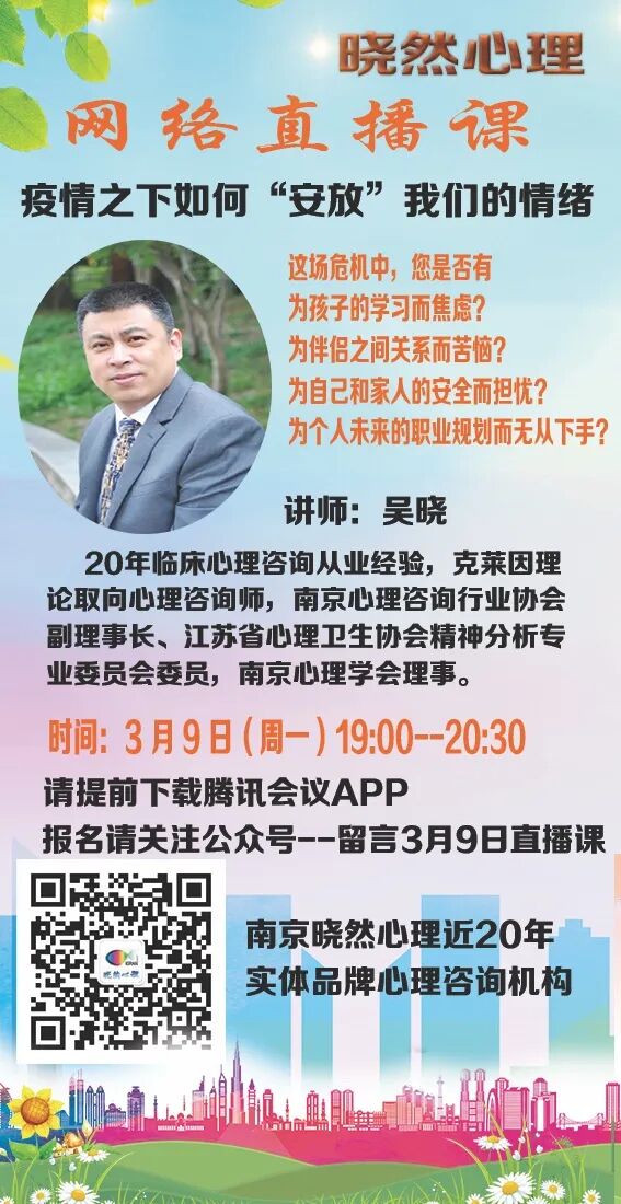3月9日网络直播课┃疫情之下心理的情绪安放和梳理